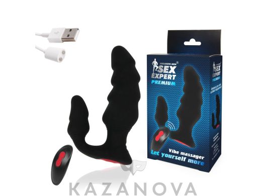 Втулка анальная с вибрацией Sex Expert Premium черная дистанционный пульт