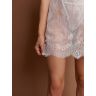 Сорочка изготовлена из полупрозрачной ткани с кружевной отделкой. Сорочка выделяет и поддерживает грудь, привлекает внимание глубоким декольте и оставляет открытую спину.