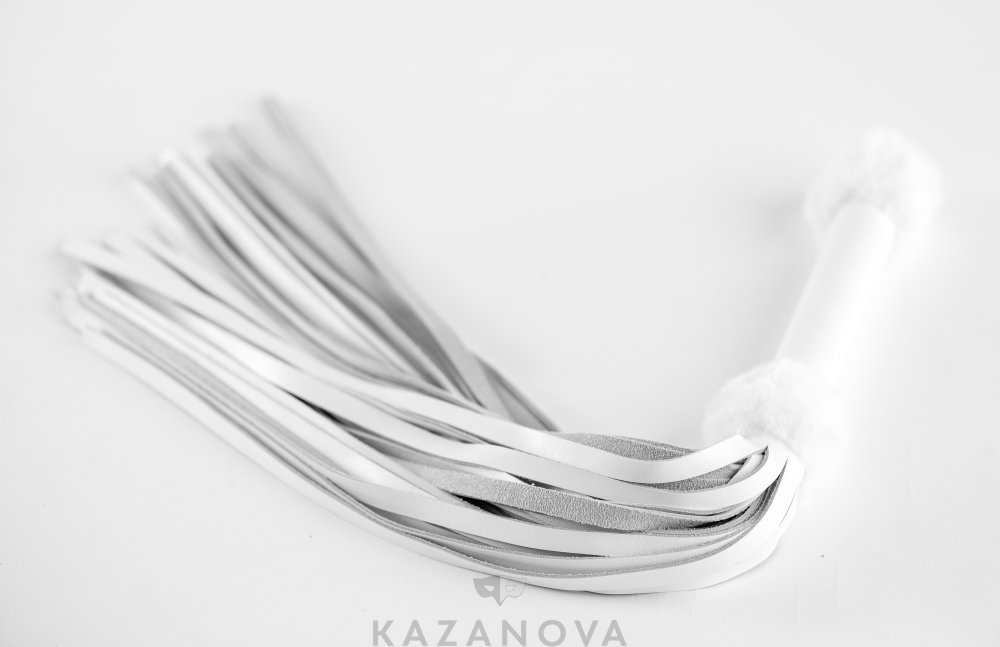 Флогер Арсенал изготовлен из качественной и мягкой натуральной кожи. Девайс имеет рукоять и гладкие концы. Декорирован мехом белого цвета.
