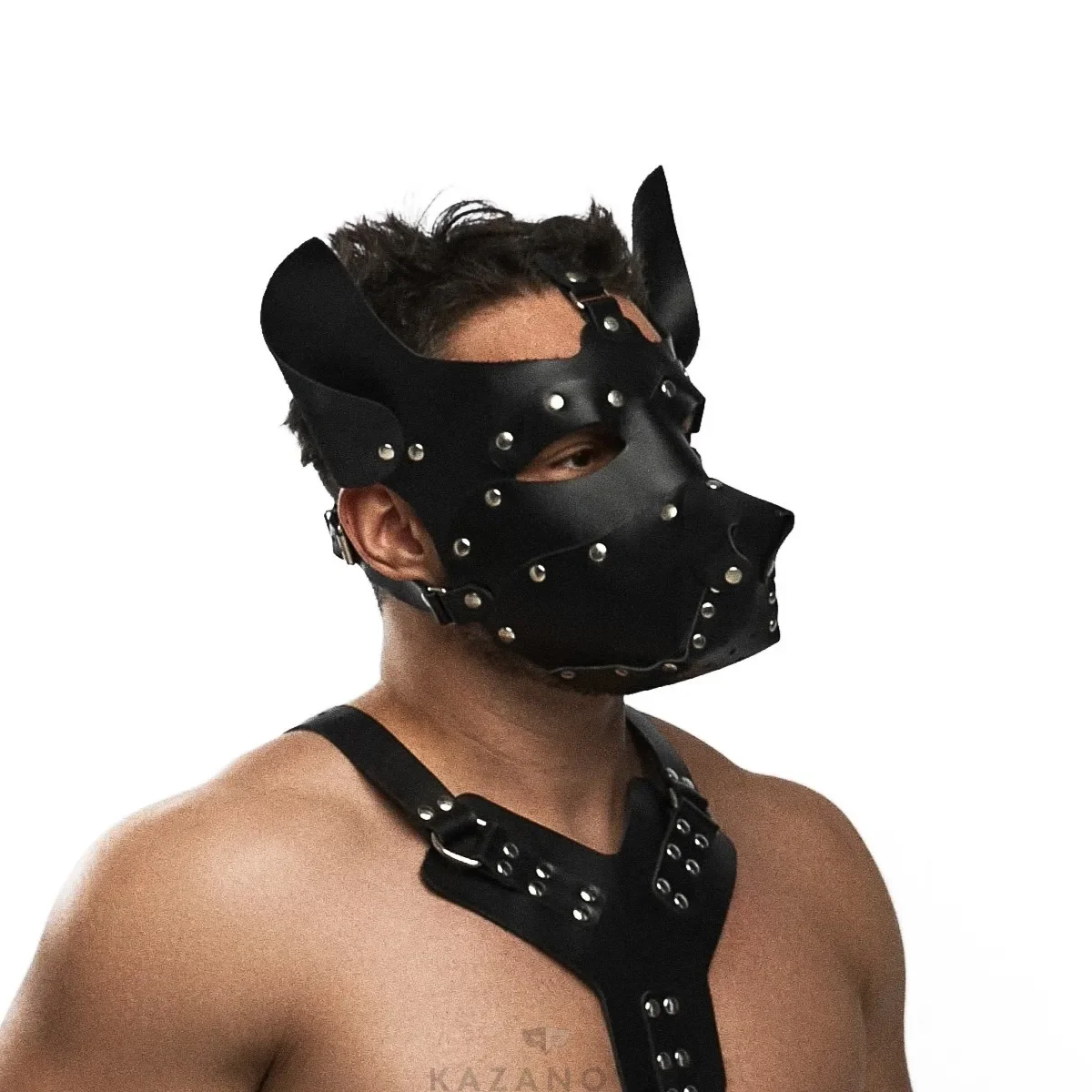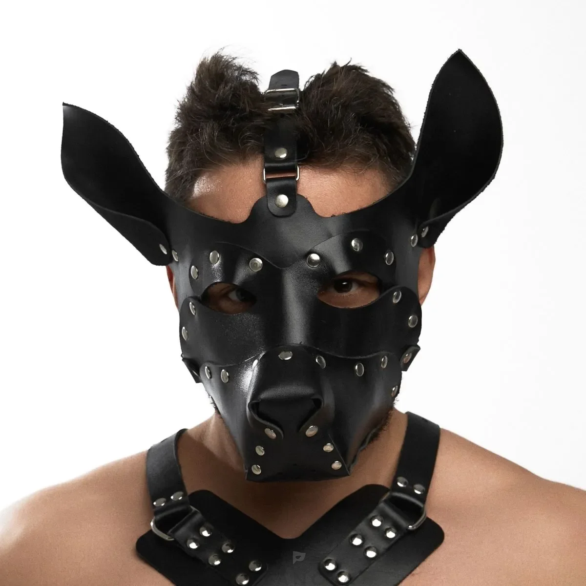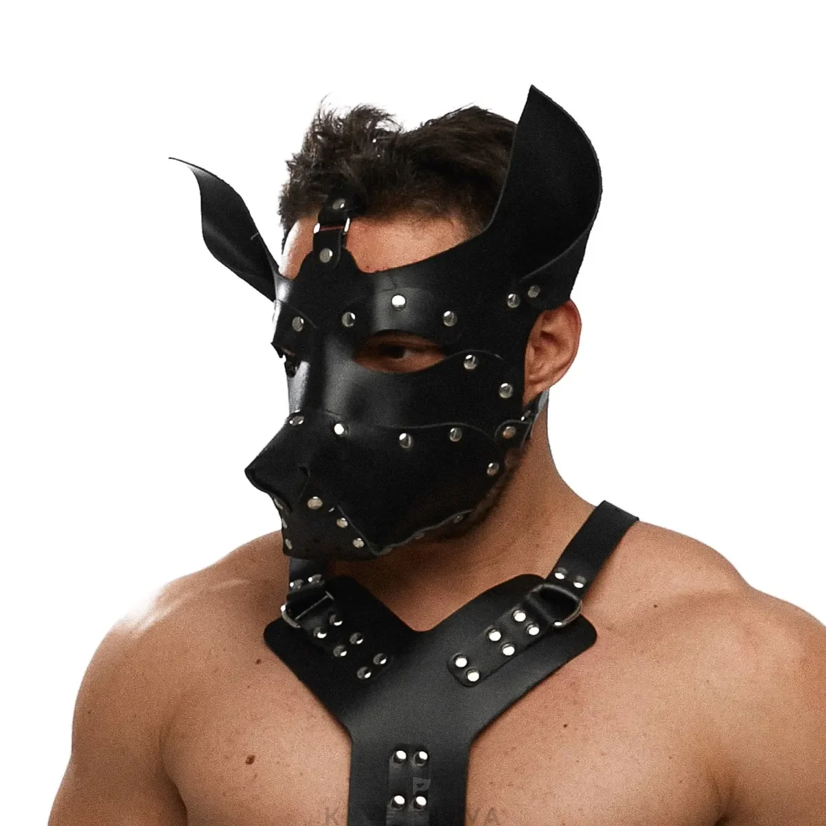 Маска Crazy Handmade "Собака" из натуральной кожи чёрная 064