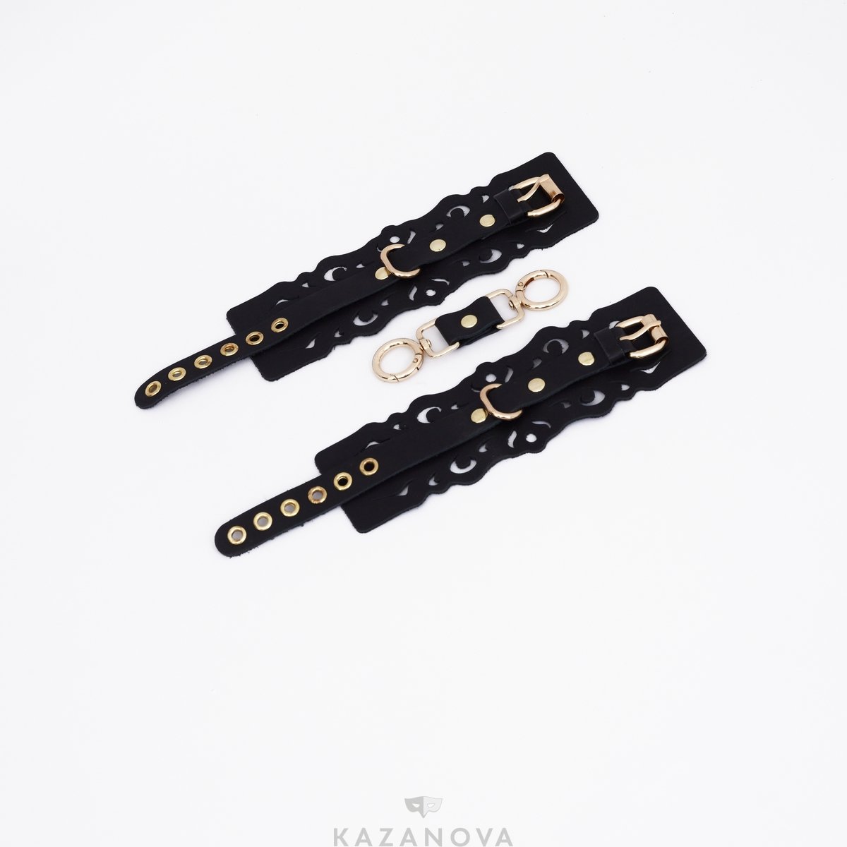 Наручи Crazy Handmade с узорами и золотой фурнитурой из натуральной кожи чёрные