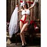 Вместо привычного новогоднего колпака в комплекте идет игривый ободок с небольшой шапочкой Санта-Клауса. Открытое боди сделано из приятного на ощупь материала. Бюстгальтер с мохнатой отделкой привлечет к твоей груди дополнительное внимание, а полупрозрачная пелерина слегка прикроет всё самое интересное. В наборе также идут элегантные митенки, прекрасно дополняющие твой образ.