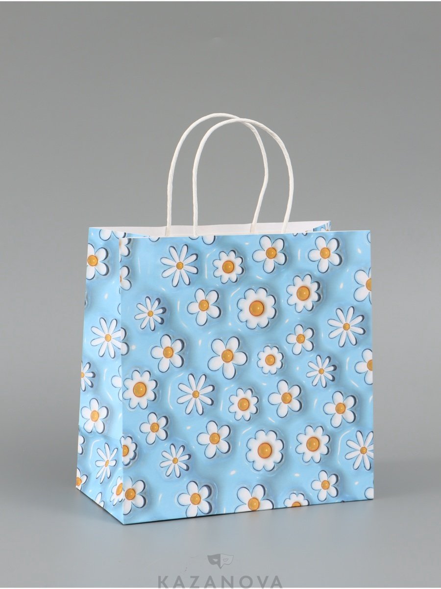 Пакет подарочный крафт "Ромашки» 22×22×11 см