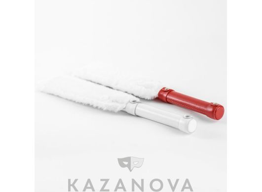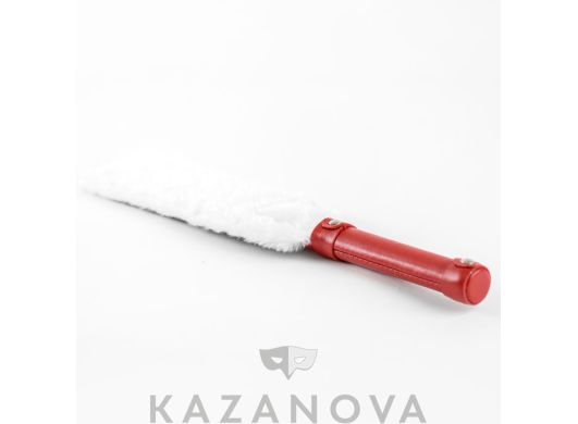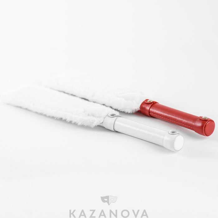 Девайс изготовлен из натуральной кожи белого цвета и декорирован натуральным мехом. Одна сторона спанка из кожи, а с другой стороны находится нежный мех.