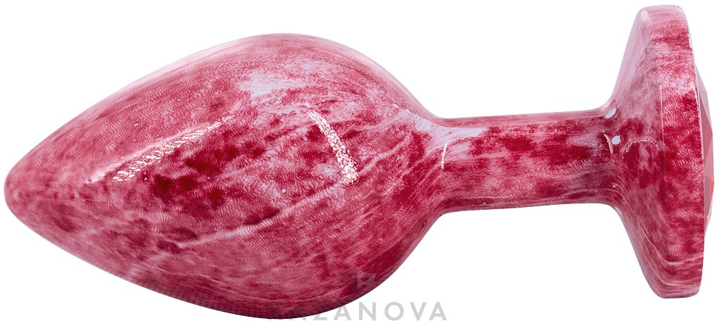 Литая анальная пробка имеет конусообразную форму и гладкую фактуру шлифованного металла которую обволакивает эмаль. Легкий и прочный алюминиевый сплав гарантирует долговечность и гигиеничность. Крупный граненый кристалл в основании имеет специальное светоотражающее покрытие дна для усиления блеска и более яркого и красочного вида.