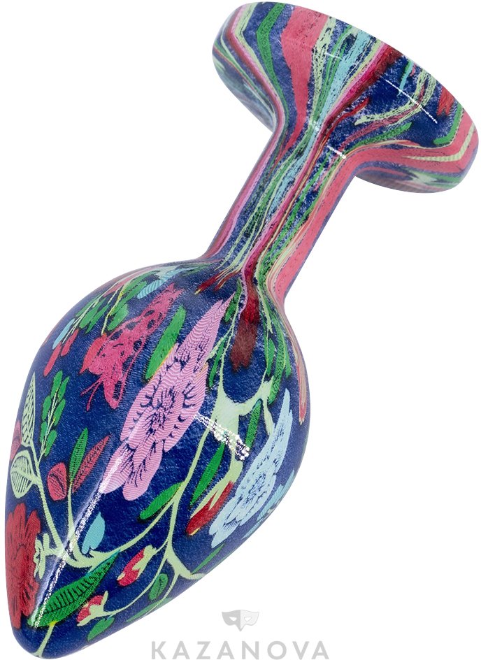 Литая анальная пробка имеет конусообразную форму и гладкую фактуру шлифованного металла которую обволакивает эмаль. Легкий и прочный алюминиевый сплав гарантирует долговечность и гигиеничность. Крупный граненый кристалл в основании имеет специальное светоотражающее покрытие дна для усиления блеска и более яркого и красочного вида.