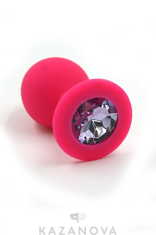 Втулка анальная Kanikule из силикона средняя розовая с сиреневым стразом