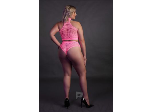 Комбинезон из крупной сетки. Насыщенный цвет. Плотно облегает тело.